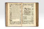 HEURES. — Horae in laudem beatissimae virginis Marie ad usum Romanum. Paris, pour Charles L’Angelier, 1556. In-8, veau fauve, listel peint en noir encadrant les plats, grand cartouche à entrelacs avec réserve centrale duquel se déploient...