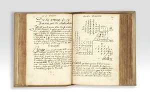 MANUSCRIT. — Traité d’arithmétique. S.d. [début du XVIIe siècle]. Manuscrit in-4 (environ 200 x 150 mm), 8 feuillets non chiffrés, 459 pages et 10 pages non chiffrées de table, peau retournée, dos à nerfs, pièce de titre rouge...