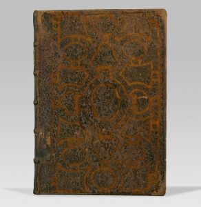 RELIURE. — DALIBRAY (Charles). Vers philosophiques et moraux. S.l., 1641 [sic, en réalité 1653]. Petit in-8, pp. 3-96, veau brun, plats ornés d’un décor à compartiments, dos orné de fleurons, tranches marbrées (Reliure du XVIIIe siècle).