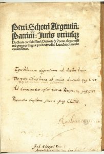 ► ÉDITION ORIGINALE INCUNABLE DU PRINCIPAL OUVRAGE DE PETRUS SCHOTTUS, CHANOINE STRASBOURGEOIS CONSIDÉRÉ COMME LE PREMIER HUMANISTE EN ALSACE.