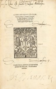♦ Partagée entre Jean Petit et Galiot du Pré, elle est sortie des presses d’Antoine Augereau, FIGURE IMPORTANTE DANS L’HISTOIRE DE LA TYPOGRAPHIE EN FRANCE. Le caractère romain utilisé ici par Augereau, gravé par lui-même, assure une grande élégance à cette impression.