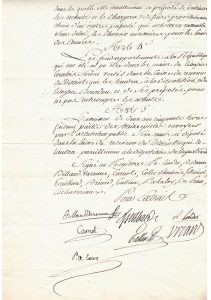Pièce signée pour extrait par plusieurs membres dont BILLAUD-VARENNE, CARNOT, TREILHARD, LINDET, TALLIEN, LALOY, BREARD.