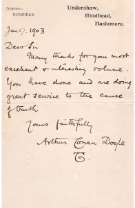 Arthur CONAN DOYLE. 1859-1930. Médecin, écrivain, fameux auteur des romans de Sherlock Holmes. L.A.S. Hindhead, 17 janvier 1903. 1 pp. bi-feuillet in-8, en-tête à son adresse ; en anglais.