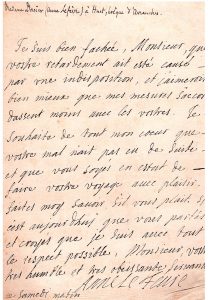 Je souhaite de tout mon cœur que vostre mal n’ait pas de suite et que vous soyés en estat de faire vostre voyage avec plaisir (…).