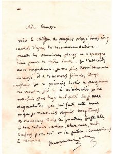 Jolie lettre pleine d’affection pour sa compagne Ernesta, probablement au moment de la naissance de Judith (1845), et dans laquelle Gautier recommande de ne rien épargner pour sa chère santé ;