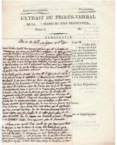 • Une assignation du jury dégustateur et un extrait du P.V. du jury dégustateur sous l’Empire (2 imprimés vierges, 2-2 pp. in-4).