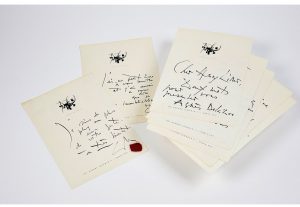2 billets, très graphiques, de l’artiste ; souhaitant adresser un de ses livres, évoquant son souvenir ;
