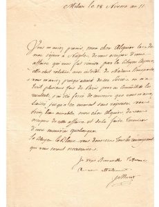 Joachim MURAT. 1867-1815. Maréchal d’Empire, Grand Duc de Berg, Roi de Naples. L.S. avec compliment aut. Milan, 18 nivôse an 11 (8 janvier 1803). 1 pp. in-4.