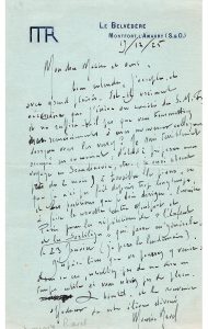 ♦ Belle lettre de Ravel préparant une tournée en Scandinavie ;