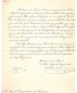 Lettre de remerciements pour l’accueil réservé par la France à son fils le Grand Duc Constantin, en mission diplomatique (un an après la fin de la guerre de Crimée), venu pour étudier la Marine française.