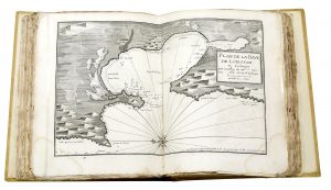 AYROUARD (Jacques). Recueil de plusieurs plans des ports et rades et de quelques cartes particulières de la mer Méditerranée, avec les figures des terres remarquables pour les reconnoissances des atterrages. S.l., s.n., 1746 ; gr. In-4, vélin,...