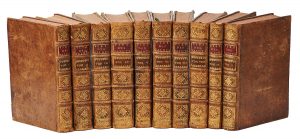 10 vol. In-4, veau granité, trois filets à froid en encadrements sur les plats, dos à nerfs orné de motifs dorés, pièce de titre rouge et de tomaison marron, [rel. de l'époque], un peu frottée.