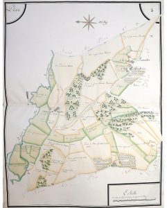 [TERRIER].– COUTOUVRE. Plans cadastraux de la commune de Coutouvre et des communes attenantes. , fin XVIIIe s. ; In-folio, parchemin muet, [rel. de l'époque], usagée.
