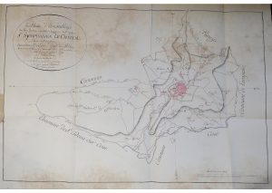 Le grand plan replié de l’ensemble de la commune est daté du 1er août 1817, tandis qu’une notre manuscrite au premier contreplat donne la date du 15 mai 1778.