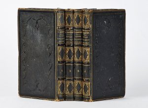 plats, large décor estampé à froid dans un encadrement d’un filet doré, dos à nerfs orné de motifs dorés, tranches peignées, [rel. de l'époque], un peu frottée.