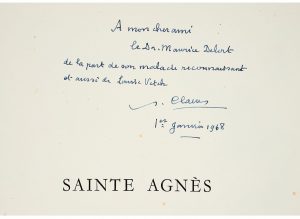 CLAUDEL (Paul). Sainte-Agnès. ► Avec un autographe de l’auteur. Paris, Les Presses de Coulouma, 1947 ; In-4 (33,2 x 26,2 cm), en ff., chemise et étui.