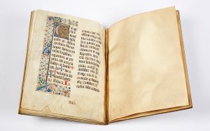 Beau spécimen de livre manuscrit au Moyen Âge.