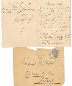 Joris-Karl HUYSMANS (1848-1907). L.A.S., [14 mai 1878], à Léon Cladel à Sèvres ; 3 pages et demie in-12, enveloppe.{CR} « Je sors de chez Leconte de Lisle, il a reçu votre livre couleur de sang » [L’Homme de la Croix-aux-Bœufs]…...