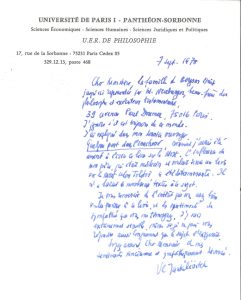 Vladimir JANKÉLÉVITCH (1903-1985) philosophe. 6 L.A.S., 1978-1981, à M. et Mme Pascal Grousset ; 6 pages in-8 (plus 2 cartes de visite a.s.).{CR} Belle et intéressante correspondance sur Bergson. Il conseille deux livres sur le philosophe,...