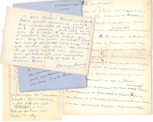 a.s. sur Charles De Coster pour son jubilé littéraire), Max Favalelli, Jean Galtier-Boissière, Roger Giron (ms a.s. sur les « étés mouillés » 1912 et 1927), Étienne Grosclaude (manuscrit a.s., La Justice Humanitaire), Louis Latzarus (et ms, commentaire du contrat de mariage de Antoine de Rivarol qu’il recopie), Raymonde Machard (2), Georges R. Manue (manuscrit a.s., En Chine), Louis Marsolleau (8 mss a.s. d’articles), Pierre Mille, Alfred Mortier, Paul Mousset, Jean Royère, Maurice Schwob, Carmen Tessier (photographie et carte de visite a.s.), Bernard Top (manuscrit a.s., Les Agents de Lénine en France).{CR} Dossier de 25 pièces relatives au feuillet humoristique mensuel bordelais Le Grelot (1910) : ensemble de brouillons d’articles, de courriers, maquettes et programmes par son gérant « Sémoy », ainsi qu’un programme illustré, quelques croquis (1907) et quelques numéros polygraphiés (2 exemplaires du n°1 d’avril 1910, supplément au n°2, n° du 3 novembre 1910, hors-série 1ère année, lettres aux lecteurs, affichette pour un Bal des Étudiants…), etc.{CR} On joint un manuscrit non signé sur La carrière d’Azeff (52 pages), plus un fragment.