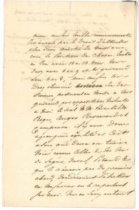 Droz avec 8 ou 9 et Mr Guiraud avec 6 ou 8, mais une fois Mr Droz éliminé six des siennes passeront en masse à Mr Guiraud par opposition violente à moi. Ce sont MM. Lacretelle Roger, Auger, Raynouard et Campenon. Il y aura donc à peu près égalité et c’est alors que deux ou trois voix comme celles de MM. de Ségur, Duval, Picard &c. que je n’aurois pas du premier abord, decideroient l’election en ma faveur en se reportant sur moi. Vous en savez autant que moi-même à present. Agissez sur cette partie semi libérale »…