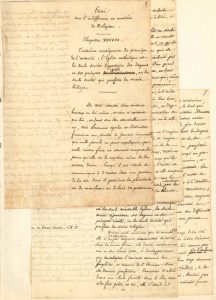 Félicité de LAMENNAIS (1782-1854). Manuscrit autographe, Essai sur l’indifférence en matière de Religion. Chapitre XXXVIII ; 11 pages petit in-4 montées sur 2 ff. in-fol.{CR} Chapitre pour un nouveau tome de l’Essai sur l’indifférence...
