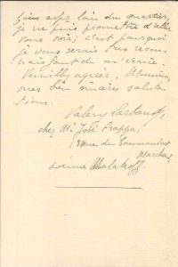 Valery LARBAUD (1881-1957). L.A.S., Paris 22 mai 1901, [à l’éditeur Léon Vanier] ; 1 page et demie in-8.{CR} Au sujet de la publication de son premier livre, La Complainte du vieux marin. Il demande où en est la publication de sa traduction...