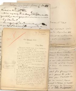 littérature. 9 manuscrits autographes (7 signés), 1 L.A.S. et 1 L.S.{CR} Léon Barracand (Miss Sarah, nouvelle), Henri de Bornier (Le Chiendent, nouvelle), Edmond Gondinet (ff. détachés de l’acte II du Panache), Léon Gozlan (feuilleton...