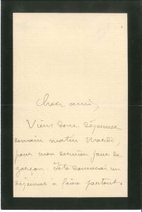 Pierre LOTI (1850-1923). L.A.S., [octobre 1886 ?], à un « cher ami » ; 1 page et quart in-8 (deuil).{CR} « Viens donc déjeuner demain matin mardi, pour mon dernier jour de garçon. Je te donnerai un déjeuner à faire partout. La Reine,...