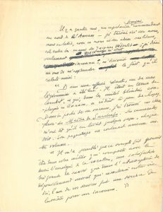 souvenirs sur Le Maître de Santiago » dans la Pléiade). Il cite une lettre d’un « capitaine français commandant au nord de l’Annam », relatant une affaire en 1949 où un de ses légionnaires a été tué : « Dans la poche de sa vareuse, j’ai trouvé un exemplaire du Maître de Santiago. Ses camarades m’ont dit qu’il en lisait quelques pages, chaque soir. […] Il m’a semblé que ce simple fait pouvait être dans votre métier qui comporte avec le mien l’analogie de la vocation, une satisfaction très grande de savoir que dans l’atmosphère de dépouillement moral qui caractérise notre vie ici, l’une de vos œuvres fut une source de lumière pour un inconnu »… Le légionnaire et l’explorateur Raymond Maufrais ont emporté ce livre condamnant les conquêtes coloniales, et Montherlant cite quelques phrases de sa pièce : « Les colonies sont faites pour être perdues. […] Aux jeunes gens les expéditions maritimes, c’est bien ce qu’il leur faut. Mais les hautes aventures sont pour les hommes de notre âge, et les hautes aventures sont intérieures ».{CR} On joint : – le brouillon autographe d’une interview sur Les Garçons, [1969] (1 p. in-4 biffée, au dos d’un fragment de lettre à lui adr.). « Alban, jusqu’à sept ans, a lorgné alternativement du côté des garçons et du côté des filles : cela fait partie de son âge physiologique »... Etc. – le brouillon autographe (incomplet de la fin) d’un article sur Don Quichotte et la faiblesse de certaines grandes œuvres (Les Nouvelles littéraires du 31 mai 1962, recueilli dans ses Essais critiques, Gallimard, 1995).
