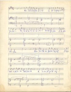 Reynaldo HAHN. Manuscrit musical autographe, [Monte Carlo, 1944] ; 2 pages et demie in-fol.- Chanson russe : « Ach ia V’lu blon v’glasa adnï »… Transcription musicale pour chant et piano, en si majeur à 3/4, en 28 mesures, marquée...