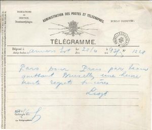 télégraphes.- « Pars pour Paris par train quittant Bruxelles une heure trente regrets sincères Liszt ».