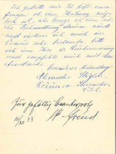 Sigmund FREUD (1856-1939) fondateur de la psychanalyse. Note autographe signée au bas d’une L.A.S. à lui adressée par Alexander Stiglitz, Roznava (Slovaquie) 20 novembre 1933 ; 4 pages in-8 ; en allemand.- Ayant obtenu son adresse d’un...
