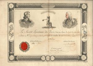 Sciences. 18 lettres ou pièces, dont 16 autographes signées, XIXe-début XXe siècle.- Diplôme de la Société Linnéenne de Paris au nom du général baron Pierre-François-Marie-Auguste Dejean, signé par Lacépède, Étienne Geoffroy...