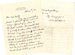 Alfred North whitehead (1861-1947) mathématicien et philosophe britannique, naturalisé américain. L.A.S., Carlyle Square, S.W. [Londres] 25 février 1922, à Miss Reilly ; 3 pages et demie in-4 ; en anglais.- Sur une conférence qu’il va...