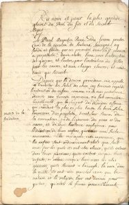 d’Angers, curé de Soulaines [Soulaines-sur-Aubance (Maine-et-Loire)], donnant les raisons et le détail de son projet de fondation d’une école de charité pour l’instruction des enfants. « Depuis que la divine Providence m’a appellé à travailler au salut des âmes, j’ay toujours regardé l’instruction des enfans comme un de mes principaux devoirs. Une funest expérience m’a fait connaitre sensiblement que la pluspart des désordres affreux qui inondent de plus en plus toute la terre, selon l’expression d’un prophète, tirent leur source de la corruption, ou de l’ignorance des père et des mères, et de leur honteuse négligence pour l’éducation de leurs enfans, qui en est une suite nécessaire »… Etc.- On joint un extrait du testament du Père Du Fresne qui lègue des fonds à la fabrique de Soulaines pour son école ; plus 2 pièces de 1741 concernant la fondation de feu Du Fresne.