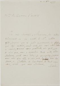 Marie-Thérèse de Savoie, comtesse d’ARTOIS (1756-1805) fille du Roi de Sardaigne Victor-Amédée III, épouse (1773) du comte d’Artois, le futur Charles X. L.A.S. « Marie », 12 octobre 1777, [à la marquise d’Usson] ; 1 page petit...