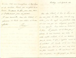 HENRI V, comte de CHAMBORD. L.A.S., Kirchberg 6 septembre 1842, à un Colonel ; 3 pages et demie in-8.- Importante lettre politique à un royaliste de Marseille.- Il a lu les lettres que le colonel a adressées au duc de Lévis, et se charge...