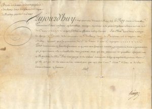 pour un vol de chevaux (1794) ; certificat d’amnistie d’un déserteur (1802) ; certificat de service militaire pour un grenadier (1802) ; permis pour la navigation intérieure sur les rivières de l’arrondissement de Bordeaux (1806) ; etc.