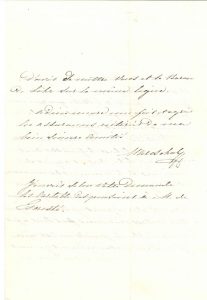 Il le prie de remercier le baron de Hull de ses soins pour l’envoi des chevaux, et demande le jour « jusqu’auquel les gens accompagnant le transport ont été payés à Vienne, c’est à dire si c’est du 1er août ou du 8 que leur entretien doit être calculé »… Quant aux objets non encore dispersés, « veuillez ne pas oublier dans vos propositions, le principe sur lequel on s’est basé, c’est-à-dire, les rapports des personnes avec le feu Prince »… Il félicite le général sur la distinction que l’Empereur lui a accordée, ainsi qu’à ses adjoints. « Me l’Archiduchesse [Marie-Louise] les a chaudement recommandés à l’Empereur et a également écrit à leur égard au Président du Conseil de guerre »…