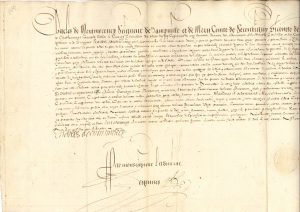 françoise de grace », pour aller sur les côtes de l’Afrique, et même par delà le Cap de Bonne Espérance, en Asie, « ou vers les Isles du Perou, pays du Bresil tant a lamont qu’a laval et aultres lieux et endroits de la Mexique et Amerique »... On joint une quittance (Lyon 1620).