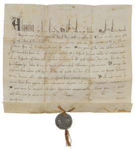 Alexander PP IIII pendant sur lacs de soie jaune et rouge ; en latin.- S’adressant aux sœurs de l’hôpital nouveau de Spoleto, de l’ordre de Saint Augustin, le Pape approuve la décision de l’évêque de Spoleto de réunir le vieil hôpital voisin de l’église San Gregorio de Spoleto, en grande partie ruiné et détruit, à leur hôpital (della Stella).