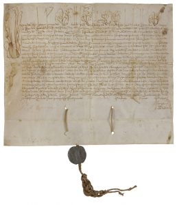 ornées à la 1re ligne (quelques taches), sceau en plomb Alexander Papa VII pendant sur cordelette de chanvre ; en latin.- Attestation de privilège pour le clerc espagnol Miguel Feryayez de Azedo, postdatée à cause de l’interrègne suivant la mort d’Innocent X (7 janvier 1655) [à cause de l’opposition de Mazarin contre Chigi, la nomination n’eut lieu que le 7 avril]. Signatures de chancellerie.