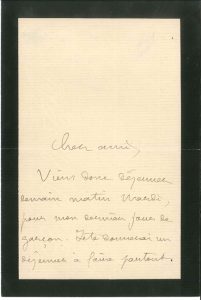A une demoiselle : « Mon mari me charge de vous faire parvenir ce petit croquis pour votre œuvre […] ».