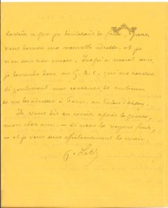 Lettre, très fragilisée, contrecollée sur un feuillet plus épais (papier rongé sur les bords touchant la première ligne) ;