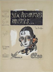 Projet d’illustration signé pour la couverture de Six Hommes Morts de Stanislas-André Steeman paru dans la Collection du Masque en 1931.