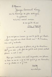 paraphés sur vergé d’Arches, nominatif pour Georges-Emmanuel Lang, doté d’un envoi signé et daté juin 1932 en page de garde.