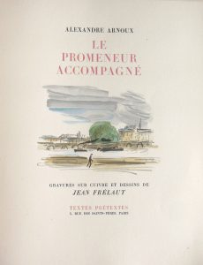 [FRÉLAUT]. Réunion de deux ouvrages : • ARNOUX (Alexandre). Le Promeneur Accompagné. Gravures sur cuivre et dessins de Jean Frélaut. Paris, Textes Prétextes, 1948. In-4, en ff. Étui un peu sale. Ouvrage tiré à 20 ex. hors commerce et 251...