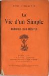 GUILLAUMIN (Emile). La Vie d’un Simple (Mémoires d’un métayer). Paris, Stock, 1904. In-12, broché. Envoi sur le faux-titre (nom du dédicataire effacé) : Hommage respectueux de l’écrivain paysan bourbonnais. Édition originale. ►...