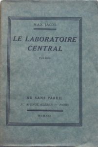JACOB (Max). Le Laboratoire Central. Poésies. Paris, Au sans Pareil, 1921. In-8, broché. 173-(2) pp. → Édition originale tirée à 25 ex. hors commerce et 750 ex. numérotés. ▬ Envoi autographe signé de Max Jacob : • « à Louis de...